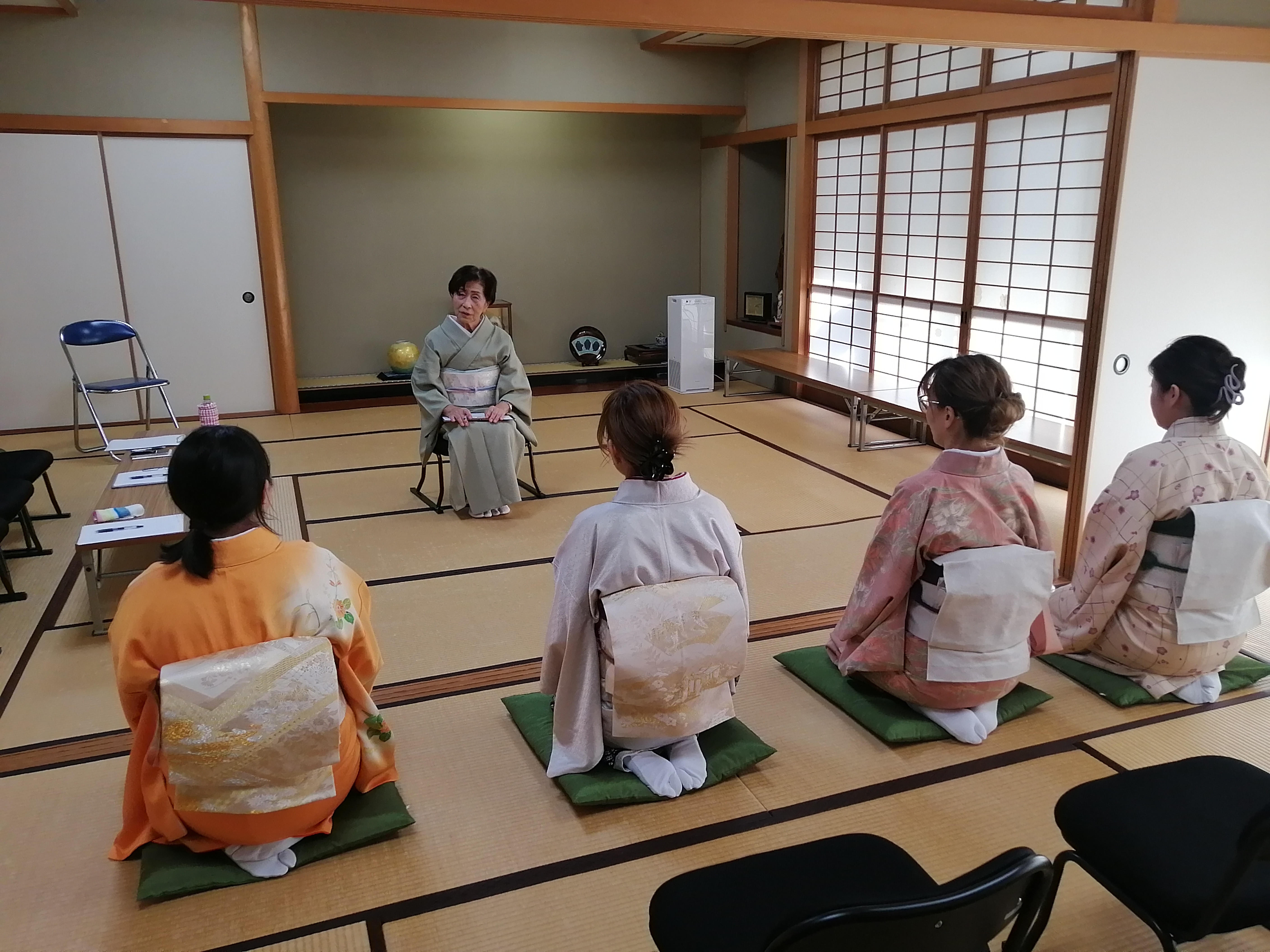 (認定試験後の講評の様子:皆さん素敵に着こなしています♪)