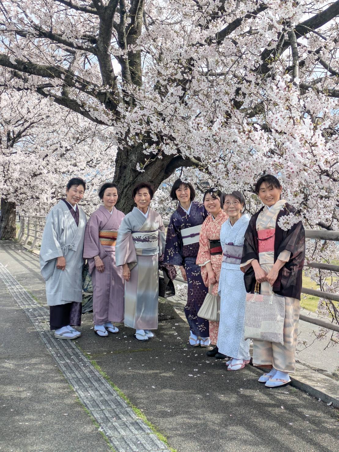 この日は皆さん、桜模様の着物や帯、淡いピンクの着物など、お花見らしいコーディネート。
